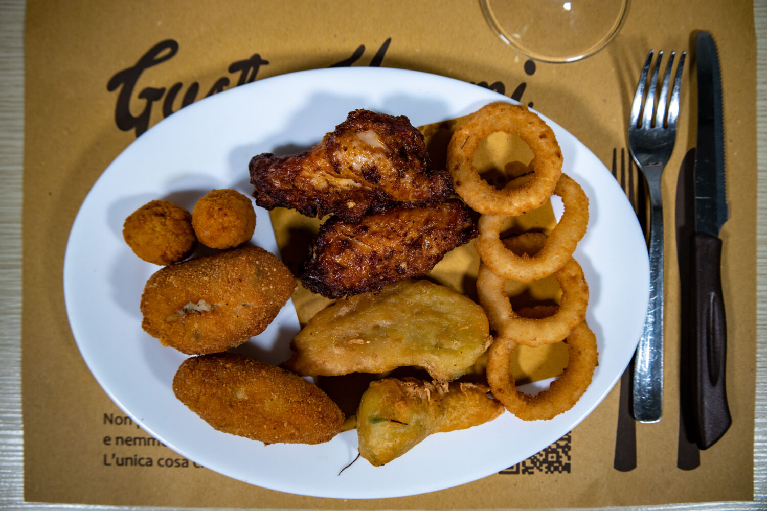 Dall’antipasteria di piatti caldi e freddi alle insalate ai mitici fritti, con patate fritte, crocchette, alette di pollo, arancini di riso…